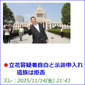 スレッドタイトル : 立花容疑者からの示談の申し入れ 竹内元県議の遺族が拒否