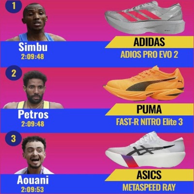 プーマの「FAST-R NITRO ELITE 2」、3位のイリアス・アウアニ(イタリア)はアシックスの