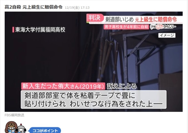 自殺当時の上級生に165万円の賠償命じる判決 福岡地裁「著しい苦痛 尊厳大きく損なった」