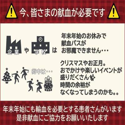 「年末年始、とても忙しいと思いますが輸血を待つ患者さんが