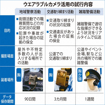 警察官が職務中に装着する小型の「ウェアラブルカメラ」の導入を