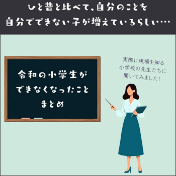 「令和の小学生ができないこと」を小学校の先生たちに聞いてみました。
