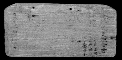 2センチ、横25・2センチ、厚さ0・9センチのスギ属の板とみられ、左右の上端に穴があった。赤外線撮影した文