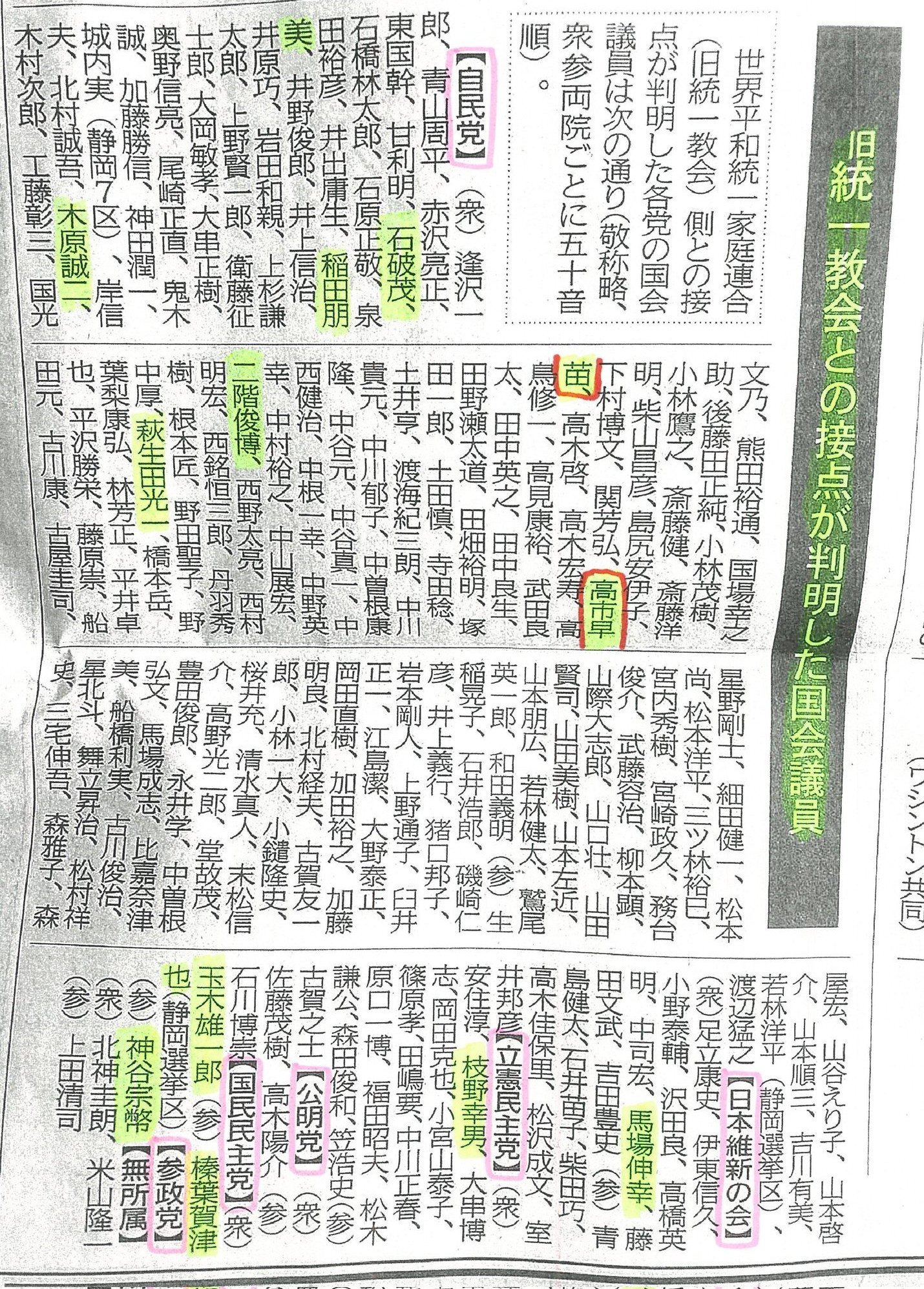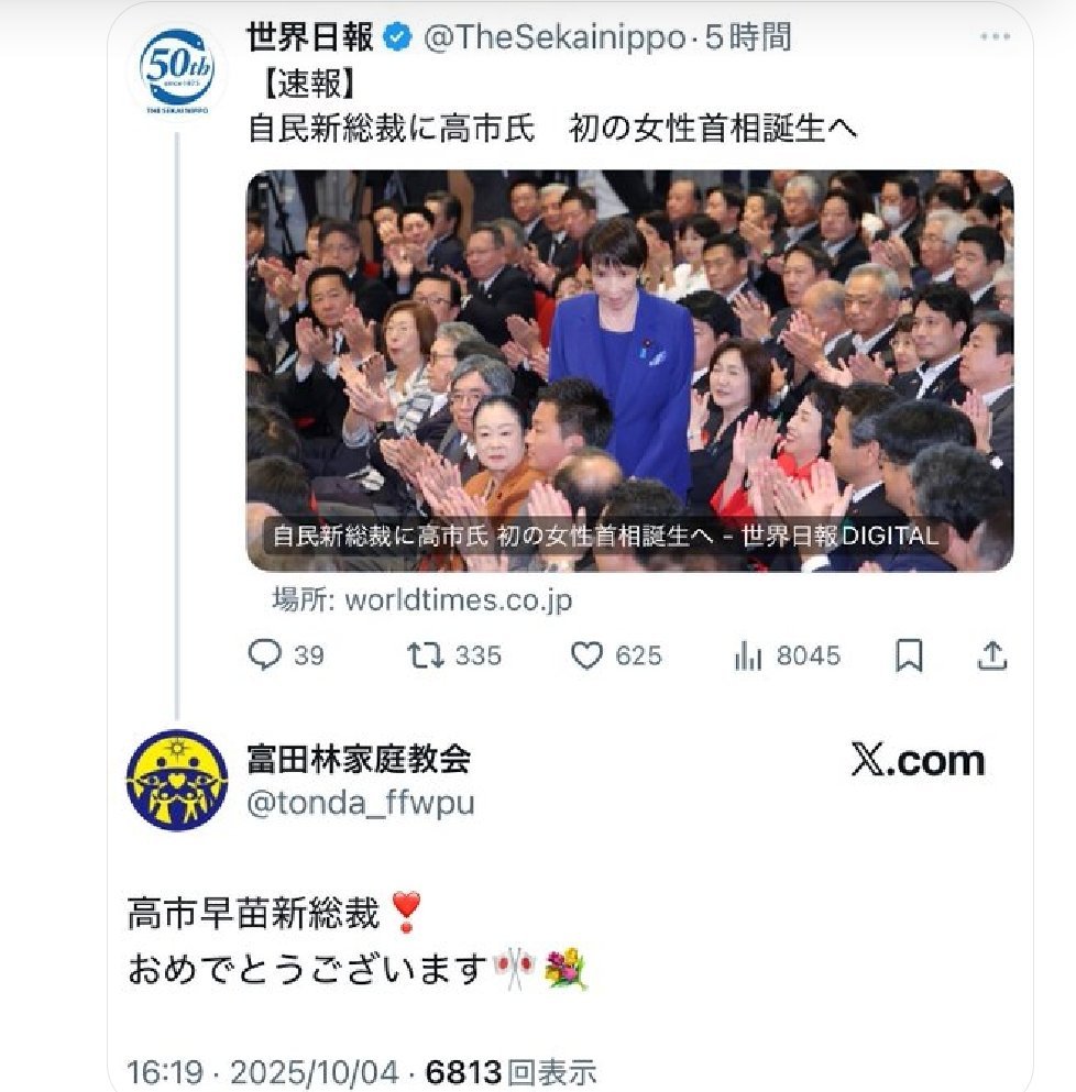 スレッドタイトル : 「我々と近い」旧統一教会、政治家との関係アピール 高市氏にも言及