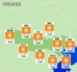 昼間は昨日より気温が下がりそう。夜ほどグッと