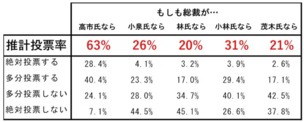 各候補のうち、だれが総裁なら自民に投票するかを質問