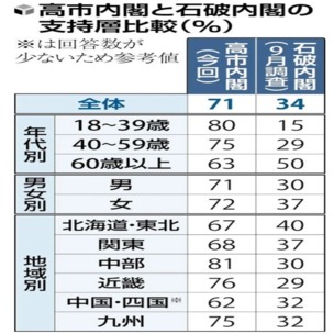 石破内閣は高齢層からの支持が比較的高かったが、高市内閣では逆に、
