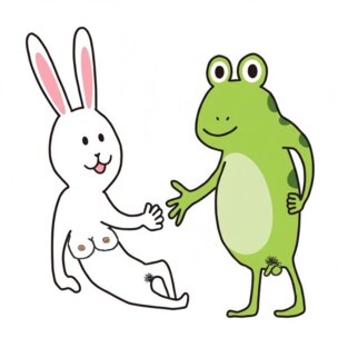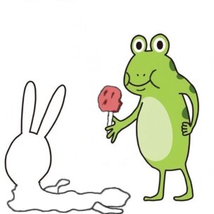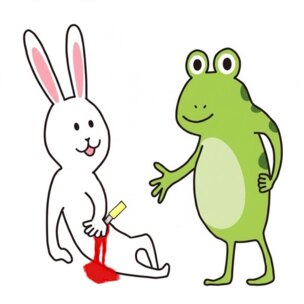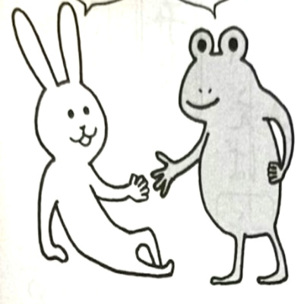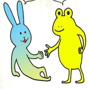 うさぎ「ああ、ウッカリ寝てしまってた!起こしてくれてありがとうございます、かえるさん」
