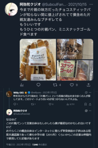 の思い出を語った際、相手から「あ、片親パンね」と言われたという体験談。「片親パン」とは、安価で量の多い菓