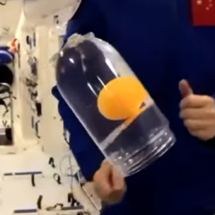 球形の水を割り箸くらいの棒で外周をぐるぐる回して