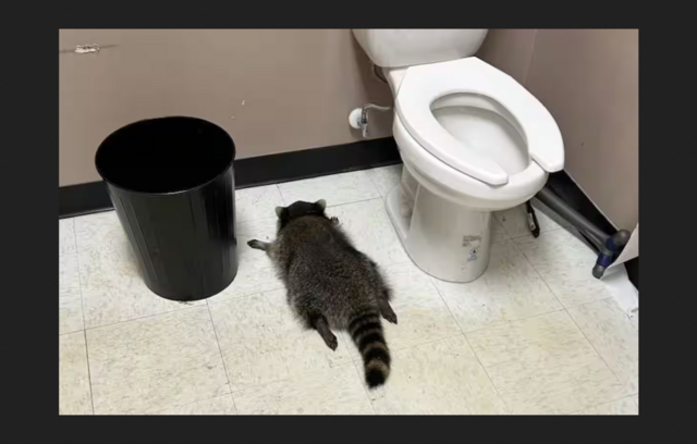 トイレで気を失っている野生のアライグマを発見。酒に酔っており「容疑者」と特定された。米メディアが報じた。