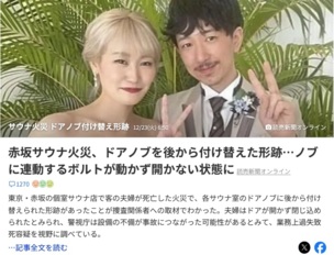 スレッドタイトル:赤坂サウナ火災、ドアノブを後から付け替えた形跡