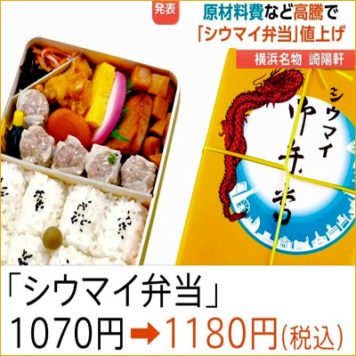 崎陽軒シウマイ弁当 110円上がり1180円に