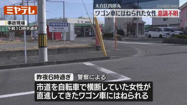 警察によりますと26日午後6時過ぎ、太白区四郎丸の市道を自転車で横断していた女性が、直進してきたワゴン車に