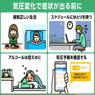 気圧変動に伴う頭痛、首や肩のこり、めまい、全身倦怠感、