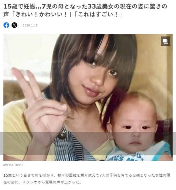 スレッドタイトル:15歳で妊娠…7児の母となった33歳美女
