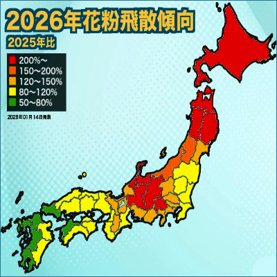 飛散量は全国平均で、前年の118%、平年の128%の予想です。