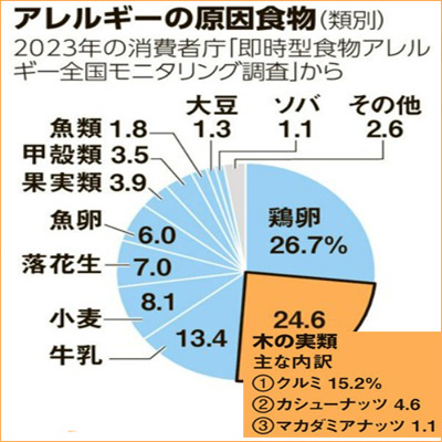 アレルギーの原因となる「クルミ」について、食品だけでなく、