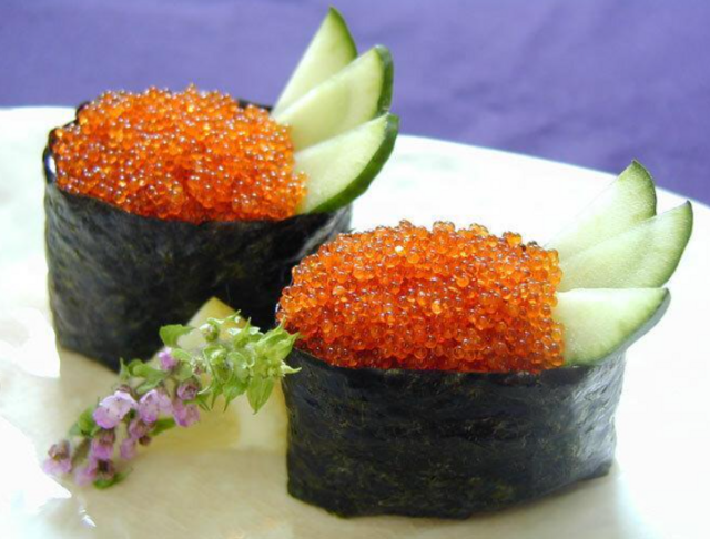 トビウオの卵は直径1ミリ前後と小さく、カラフルに着色されて軍艦巻きやちらしずしなどに使われることが多い。