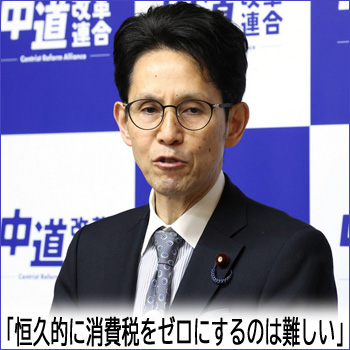 食料品の消費税ゼロ「難しい」:中道・階幹事長
